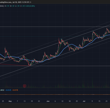 En julio de 2025, la acción volvió a ceder tras acercarse a la zona de USD 2,10, coincidente con el retroceso del 23,6% de Fibonacci desde máximos históricos. Mientras no se observe una ruptura sostenida por encima de la EMA 200, con volumen creciente y estructura de máximos y mínimos ascendentes, el sesgo bajista prevalece.