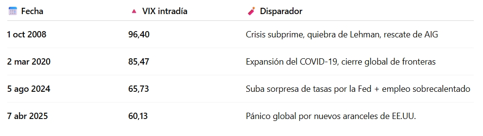 La historia enseña que los grandes picos del VIX llegan sin mucho aviso. Quien recuerde 2008, 2020 o incluso abril 2025, sabe que los mercados no avisan dos veces.