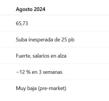👷♂️ Empleo débil: el NFP de julio mostró solo +73.000 nuevos puestos (vs. +110.000 esperados).