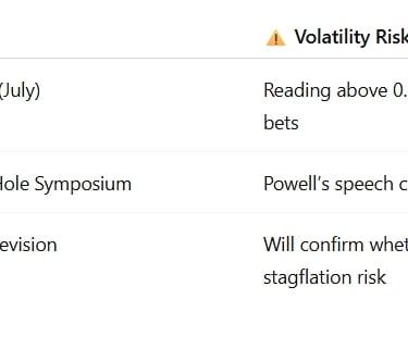 Options expiration (OPEX, Aug 16) may amplify moves via gamma flows.